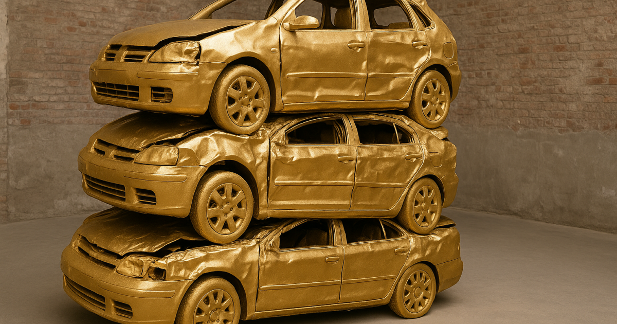 Kunst kommt von Katalog – Schwabach glänzt, aktuell leider nicht vor purer Schönheit, sondern vor Sprühfarbe: Alle zwei Jahre verwandelt „Ortung“ (heuer vom 9. bis 24.08.2025) die Stadt in eine Art Wertstoffhof mit Goldrand. Und während Meister wie Michelangelo und Gustav Klimt die Kunst am Können maßen, stapelt man heute goldlackierte Autowracks, kippt roten Sand in Säle, lässt es erst nach Marzipan, dann nach Blausäure duften – und nennt das Diskurs. Gegenwartskunst, die sich nicht zeigt, sondern erklärt werden will. Wer wissen will, wie Gold so schnell blind wird, bekommt hier eine kleine Ortskunde im Zeichen des Glanzes ohne Gehalt.
